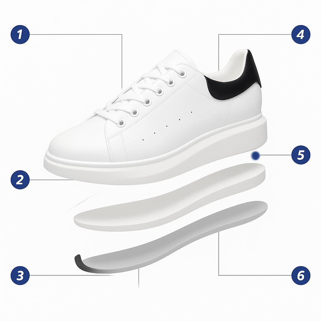 Nuestra suela de EVA de alto rebote proporciona un soporte estable y una absorción superior de impactos que cuida tus articulaciones. Además, su patrón antideslizante cóncavo–convexo en la parte inferior asegura una tracción firme y protección total, incluso en superficies resbaladizas