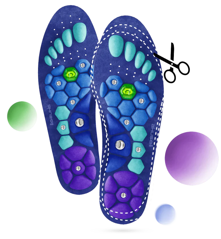 Las plantillas magnéticas de acupresión están diseñadas para adaptarse universalmente y se recortan fácilmente para adaptarse a cualquier talla o estilo de calzado. ¡Con solo un recorte rápido, disfrutarás de comodidad y alivio duraderos!