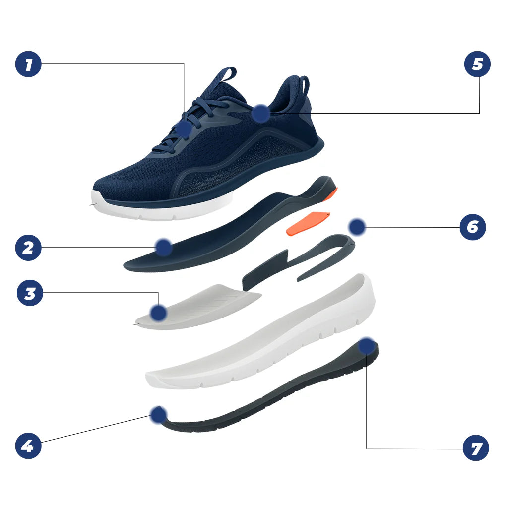 comodidad durante todo el día con una suave amortiguación y un diseño ergonómico, lo que le permite caminar sin dolor.