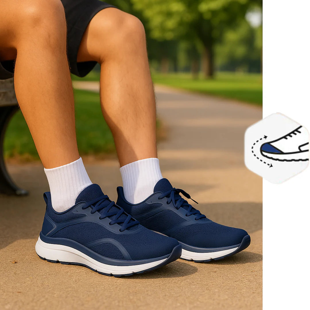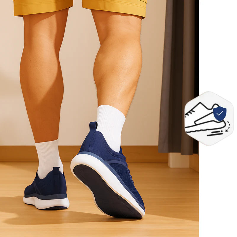 Nuestra suela de EVA de alto rebote proporciona un soporte estable y una absorción superior de impactos que cuida tus articulaciones. Además, su patrón antideslizante cóncavo–convexo en la parte inferior asegura una tracción firme y protección total, incluso en superficies resbaladizas