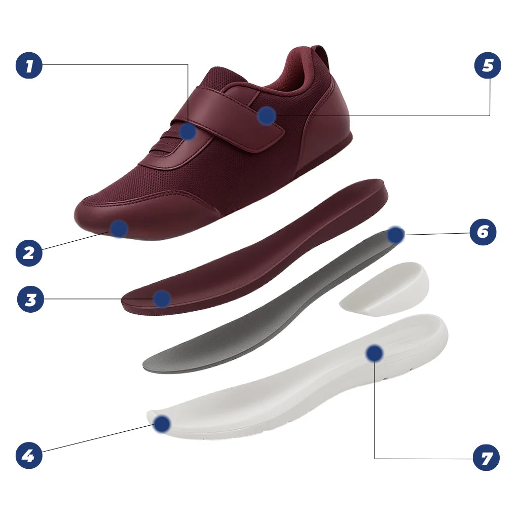 Sí, son ideales para afecciones como la fascitis plantar y los callos. La puntera ancha alivia la presión en las zonas sensibles, mientras que la amortiguación del arco y el talón ayuda a aliviar el dolor y mejora la estabilidad.