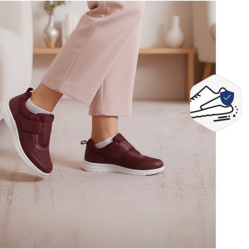 Nuestra suela de EVA de alto rebote proporciona un soporte estable y una absorción superior de impactos que cuida tus articulaciones. Además, su patrón antideslizante cóncavo–convexo en la parte inferior asegura una tracción firme y protección total, incluso en superficies resbaladizas