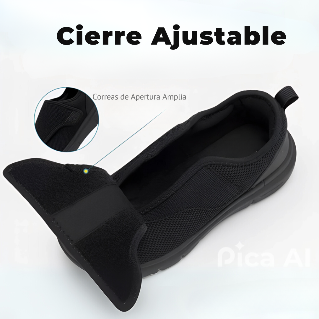 1. Empeine Abierto y Ancho: Cierre ajustable, fácil de poner y quitar