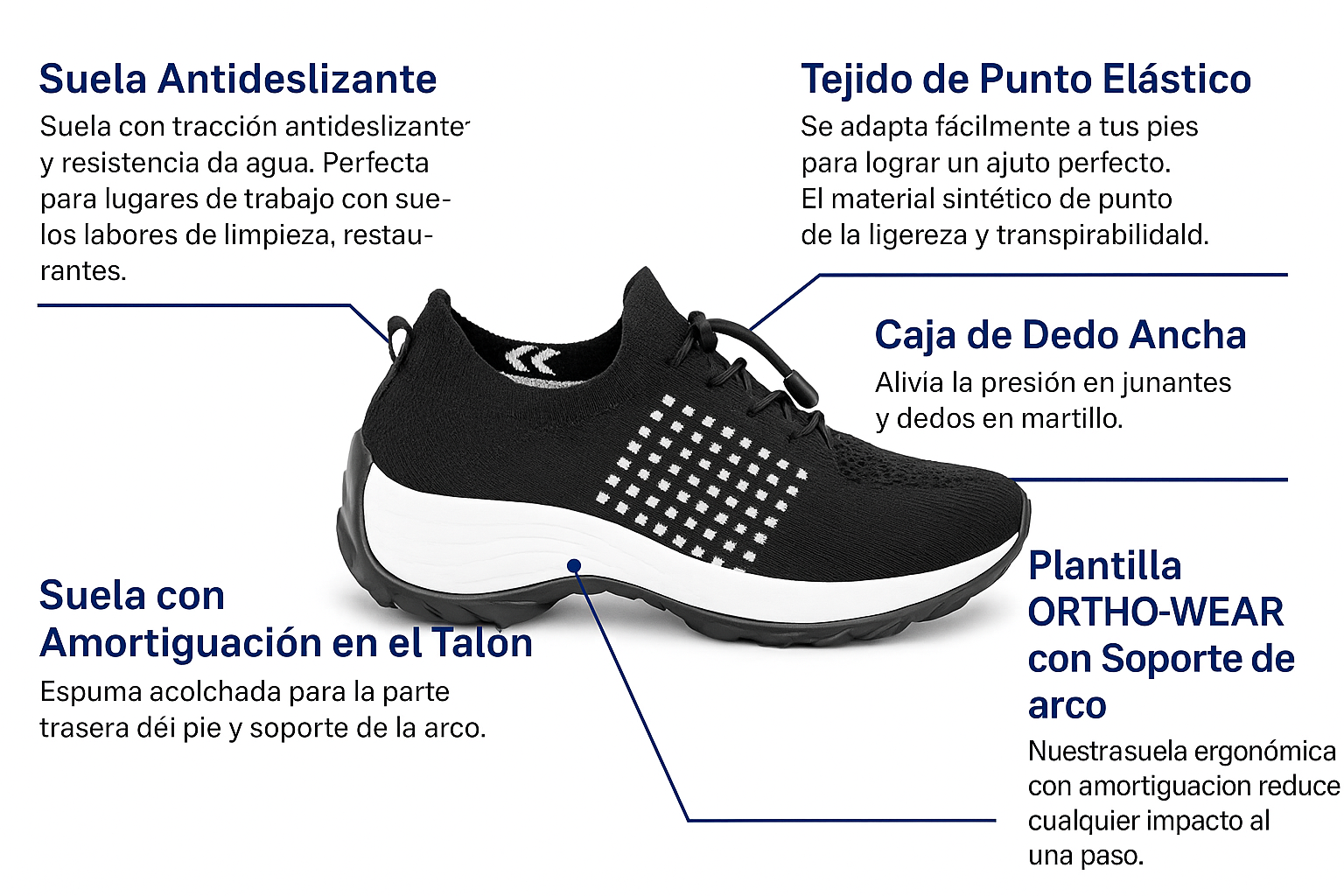 No tienes que vivir con molestias al caminar. Estas Zapatillas ortopédicas están diseñadas para adaptarse a la forma natural de tu pie, distribuyendo el peso de forma uniforme y reduciendo la tensión al caminar. Ya sea que trabajes muchas horas de pie, tengas pies sensibles o simplemente busques más comodidad en tu día a día, notarás el cambio desde el primer paso.